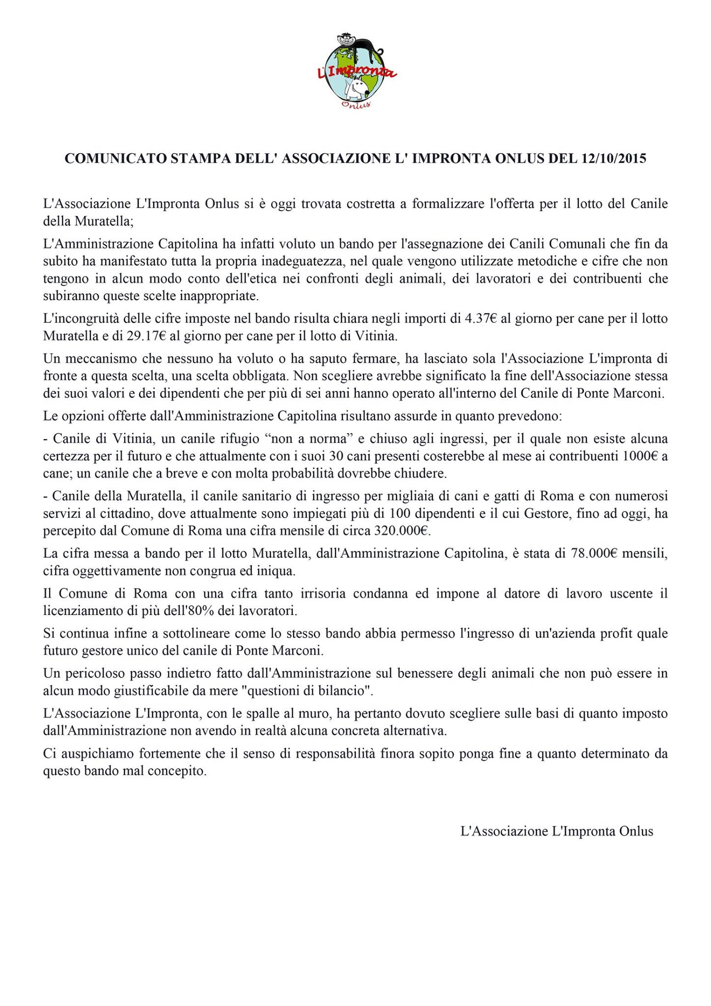 A questo punto la situazione appare estremamente delicata, L’Impronta, indicando la preferenza Muratella, sembrerebbe aver provocato la preoccupazione del Comune ma, se è vero che il canile è ingestibile a quella cifra, alla luce della legittimità della scelta, la cosa più corretta da fare sembrerebbe la sospensione del bando in autotutela e l’ammissione della svista.