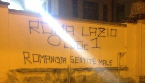“Roma 0 – Lazio 1 romanista sentite male” e una stella di Davide con accanto la scritta “l’unica stella che