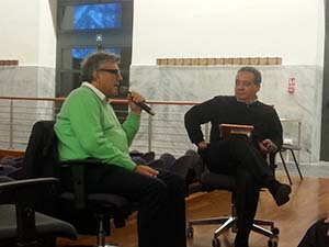 «Quando scrivono, scrittori immensi come Orhan Pamuk e Manuel Vázquez Montalbán riescono davvero a trasmettere l’anima delle loro città, Istanbul e Barcellona. Più modestamente, i miei libri su Roma sono semplicemente un racconto di personaggi e storie della Città Eterna…Nei miei romanzi la parola ha il ruolo di “ancella”, ed è quasi serva della funzione narrativa, ne è subordinata». Quasi si schermisce il magistrato della Corte d’Appello di Roma Giancarlo De Cataldo, scrittore tra i più affermati nel panorama italiano, quando il moderatore dell’incontro Giovanni Caudo, professore di architettura di Roma Tre ed ex assessore alla Trasformazione urbana nella giunta Marino-bis, ricorda alla cinquantina di presenti l’enorme successo dei suoi romanzi ambientati nella Capitale, dalla clamorosa affermazione di Romanzo Criminale (2002) che lo ha consacrato al grande pubblico, a Suburra (2013), fino al recente e attualissimo La notte di Roma, edito da poche settimane.